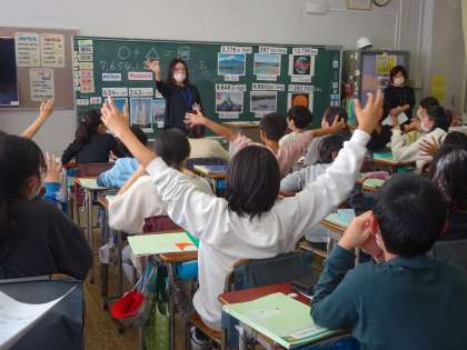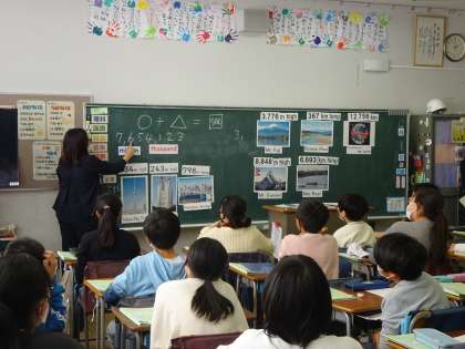 本日は、第4回の校内研究授業を行いました。6年生の英語科「大きな数」の学習でした。日本にある山や建物、地球に関係するような数について英語で聞きました。100より大きな数について、たくさん聞いたり書いたりしました。