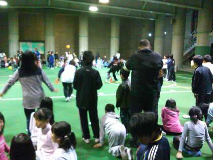 屋根つき広場でリレーと借り物競争をしました。