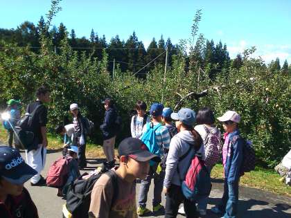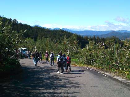 よい天気になりました。雨乞山に出発です。リンゴがたくさん実っています。