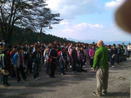 晴天のもと、閉室式をしました。ビレジの方にお礼を言いました。