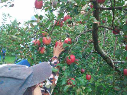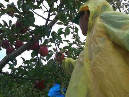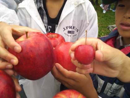 真剣に真剣に品定めです。お互いにリンゴを見せ合って自慢大会です。