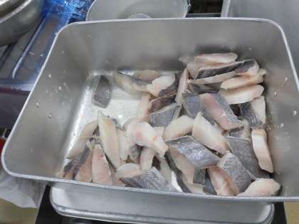 今日の主菜は、魚の変わりソースかけです。油、酢、しょうゆなどの調味料と、すりおろした玉ねぎを混ぜたソースです。揚げた魚にソースがたっぷりと染み込み、とても食欲をそそる味です。