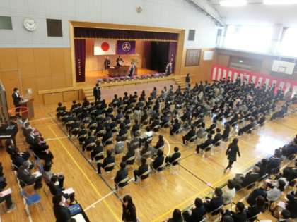 本日、暖かい日差しの中、卒業式が行われました。校長先生から一人一人に卒業証書が手渡しされました。卒業生の門出の言葉を堂々と述べられ、心のこもった歌声が響きわたるとても素敵な式となりました。