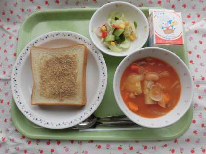 児童からは、「セサミトーストが甘くておいしかったです。」「トマトビーンズシチューがあったかくておいしかったです。」という感想がありました。