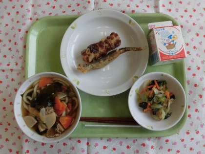 児童からは、「わかめうどんがコシがあったのでおいしかったです。」「ししゃものカリッとした部分がおいしかったです。」という感想がありました。