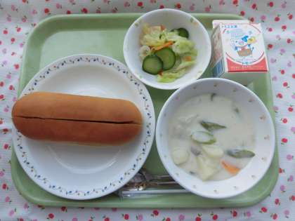 児童からは、「アスパラガス入りクリームシチューがおいしかったです。」「ジャムコッペパンのジャムがおいしかったです。」