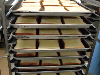 今日の主食はレモンシュガートーストです。レモンの風味がさわやかな甘さのパンです。今日は広島県産のレモンをしぼってバターと砂糖と合わせ、パンに塗って焼きました。レモンの香り成分には、リラックス効果もあるそうです。