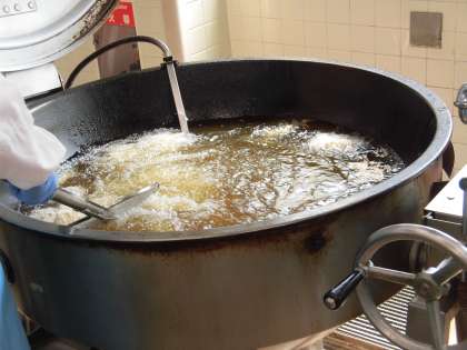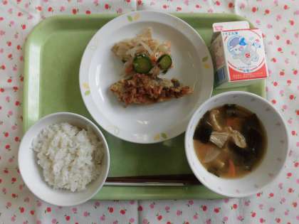 今日の主菜はあじの南蛮漬けです。あじは今が旬の魚です。南蛮漬けは、魚や肉をネギや唐辛子が入った甘酢に漬けた料理です。魚は油で揚げていますが、たれにお酢が入っているのでさっぱりした味わいです。