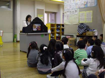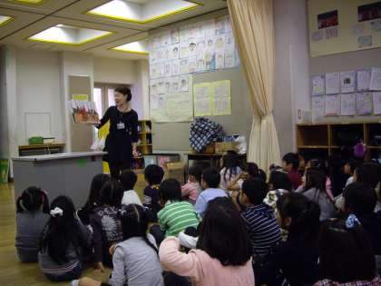 鎌田図書館から3人のゲストをお招きして、2年生がお話を聞きました。紙芝居、読み聞かせ、手遊びなど、楽しいプログラムでした。子どもたちは集中して時には楽しそうに、時にはしんみりとお話を聞いていました。図書館の方々と顔なじみの子どもも多く、本に親しむ良い時間になりました。