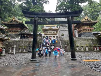 雨の中での東照宮見学を終え、宿舎に向かいます。