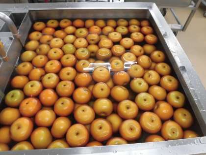 今日の果物は「なし」です。なしは夏の終わりから秋にかけて旬を迎えます。みずみずしく、シャリシャリとした食感がおいしい果物です。今日は「あきづき」という名前のなしです。全校分で200個のなしが届きました。