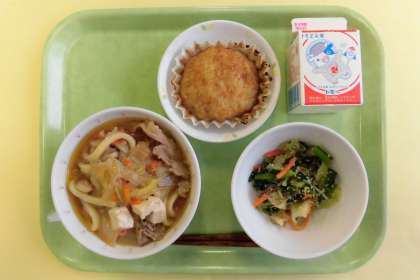 児童からは、「すき焼きうどんが甘くておいしかったです。」「五平餅のみそとしょうゆが合っていておいしかったです。」という感想がありました。