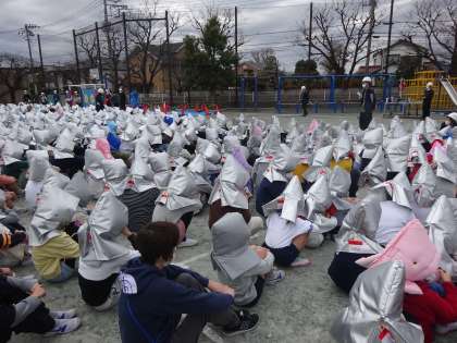 本日は、予告なしの避難訓練を行いました。これまでの避難訓練を生かして、「お・か・し・も・ち」(おさない・かけない・しゃべらない・もどらない・ちかよらない)の約束を守り、避難をすることができました。