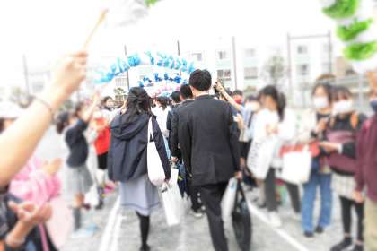 5年生も代表児童が体育館で参加し、他の児童も教室にてオンラインで参加しました。最後は、5年生、先生方、保護者の方に見送られ、卒業生が晴れやかな顔で巣立っていきました。卒業おめでとうございます。