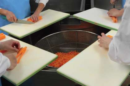 今日から1学期の給食が始まりました!砧南小学校の調理員の方は17名います。みんなで力を合わせて約1200食の給食を作ります。児童のみなさんが安全においしく食べられるように努めていきますので、1年間よろしくお願いいたします。