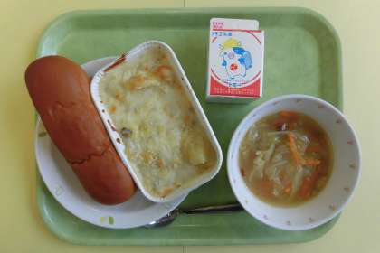 児童からは、「パンとグラタンの相性が良く、パンをグラタンに付けて食べる人も多かったです。」という感想がありました。