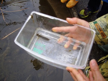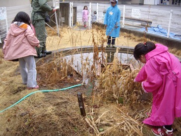 2月25日土曜日、あいにくの雨模様でしたが、みなみいけの活動がありました。カブトムシの幼虫の観察をした後で、池の周りの植物の手入れをしました。枯れている茎は刈り取りました。池の中を観察していた子が、ヤゴに気が付きました。網ですくって、水槽で観察しました。ギンヤンマのヤゴでした。