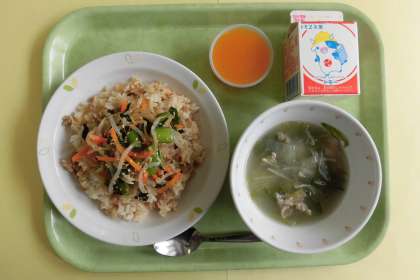 児童からは、「キャロットゼリーがおいしくて、多くの人がおかわりをしていました。」「ビビンバは、野菜と一緒に食べるとおいしかったです。」という感想がありました。