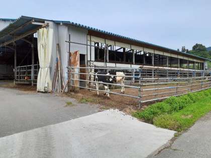 牛舎を通過中。