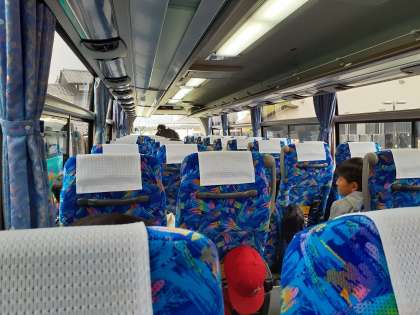 出発時刻を30分早めて、楽しかった川場村から学校へ戻ります。学校到着予定時刻は、練馬インターで高速道路を降りたタイミングでお知らせします。