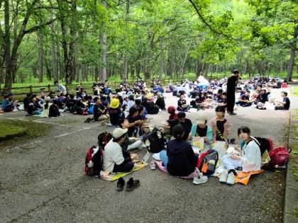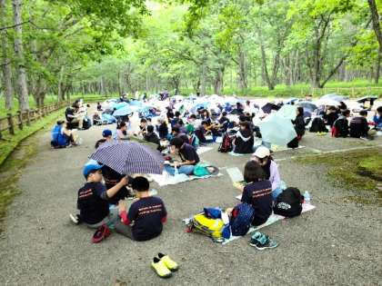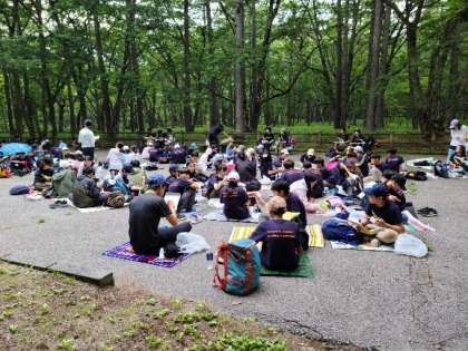 ハイキングが終わり、お昼ごはん中ですが、雨が降ってきました。