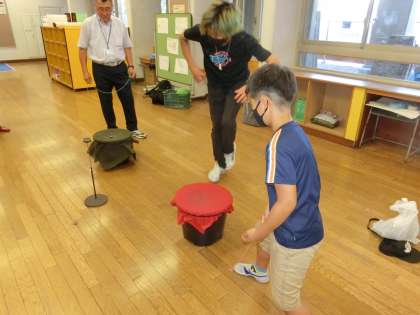 今日は、「チャレンジ・ザ・ベーゴマ」「お花で遊ぼう」「光の色の不思議」「ドッチビー」「似合う色を見つけよう」の5つのワークショップに約40名ほどの子どもたちが参加しました。