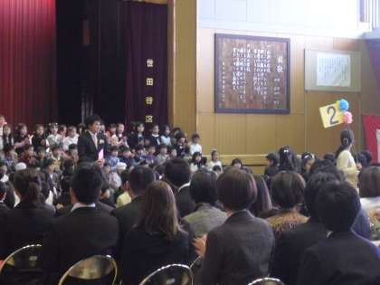 4月6日、145人の新入生を迎えて、入学式を行いました。たくさんの保護者の方に見守られて、1年生はお話をとてもよく聞いていました。あいさつも上手でした。2年生が呼びかけと歌と合唱を披露しました。2年生の演奏を、1年生は楽しそうに聞いていました。