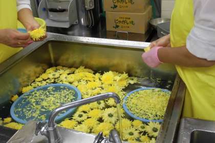 児童からは、「小松菜と菊の花のからししょうゆかけ、おいしかったです。」という感想がありました。