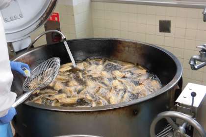 今日は節分献立です。大豆入りの節分ごはんと、いわしの揚げびたしを作りました。いわしは油で揚げた後、たれをかけて味を染み込ませます。
