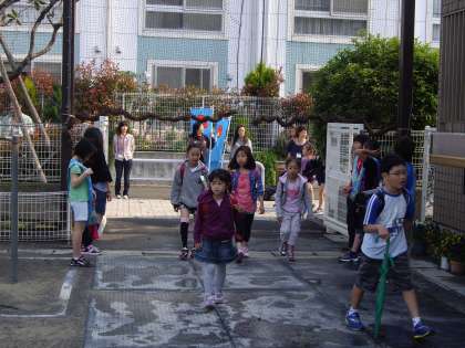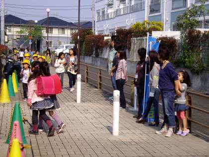 今日から3日間は、5月のあいさつの日です。門の内側には4・5・6年生が、門の外側には保護者の方が並びます。すっきりした青空のもと、元気なあいさつの声が響きました。