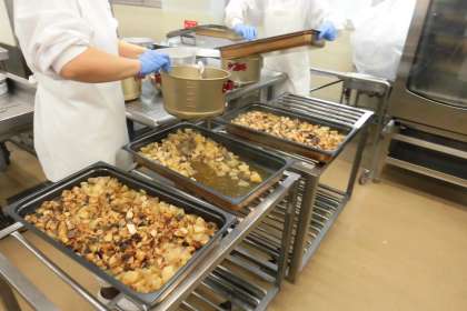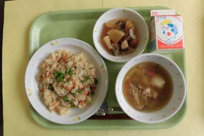 今日の給食は、富山県の郷土料理です。富山県では、ぶりやきのこなどが多くとれます。給食室ではぶり大根を作りました。