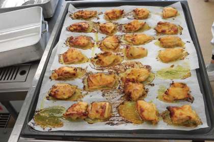 今日の主菜は、タンドリーチキンです。インド料理の一つで、ヨーグルトやスパイスに付け込んでから焼きます。本場インドでは「タンドール」という釜で焼くことからタンドリーチキンと呼ばれているそうです。