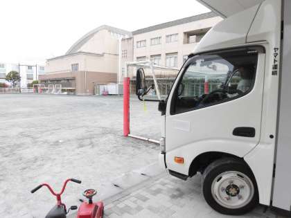 1年生が交通訓練を行いました。運送会社の方がゲストティーチャーとして、いらっしゃいました。子どもたちは、お話を聞いたあと、トラックの運転席に座って、死角となるところを確認したり、模擬横断歩道で安全に気を付けた渡り方を実践したりしました。