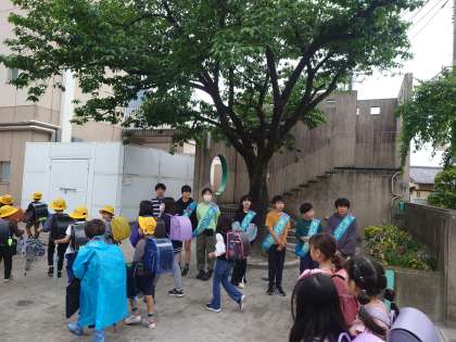 連休明け、元気な子どもたちの声が学校に戻ってきました。朝から、明るい挨拶が響いています。6年生の挨拶当番もたすきをかけて、登校してくる子どもたちに繰り返し「おはようございます」と声をかけています。