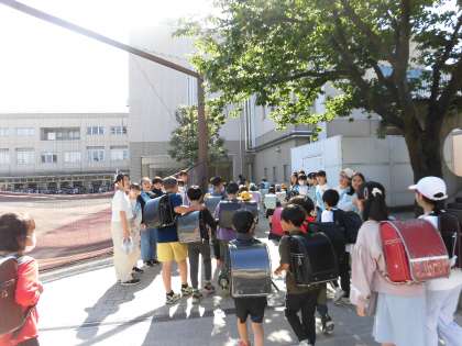 晴れてさわやかな一日となりました。毎月10日は「自立の学び舎」のあいさつの日です。代表児童が砧南中学校に出かけて、あいさつ運動を行いました。本校では毎朝、あいさつ当番が校門で、声高らかに「おはようございます」と声をかけています。今日は一段と人数も多く、盛んにあいさつの声が交わされ、響きました。