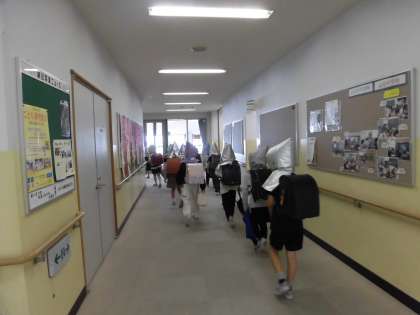 そしてもう一つ、今日は「引き取り(引き渡し)」訓練がありました。大きな地震があって警戒宣言が発令されたという想定で、すぐーるでの連絡を受けた保護者の方々が学校に子どもたちを引き取りに来てくださいました。お休みのところご協力いただきまして、ありがとうございました。