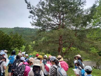 松ぼっくりが開いているとき、閉じているときの話をききました。リスが食べたあとの松ぼっくりを見せてもらいました。エビフライの形でしたね。