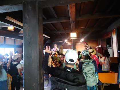 古民家を見学しています。薄暗いなか、ここでも一生懸命メモを取っている子が多いです。
