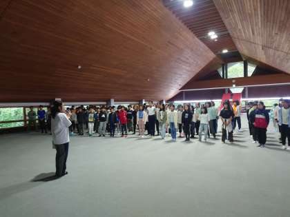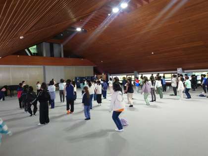 雨のため、村の会堂で朝会を行いました。お話は引率の先生からいただきました。準備ができている、協力ができる。さらに、見通しをもって行動できるともっとすてきな5年生になります、というお話でした。