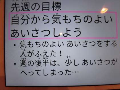 昨日、宇奈根の渡しと大倉運動公園の緑化まつりに行ってみた話をしましたが、皆さんのなかにも現地に出かけていた人たちがいたのではないでしょうか。そこでも、あいさつっていいものだなと感じたことを、朝会で皆さんに伝えました。