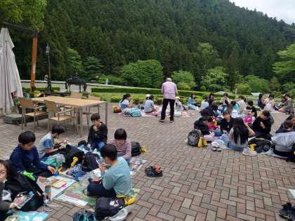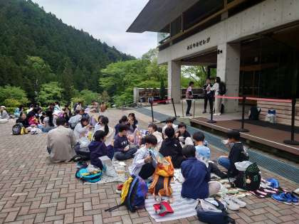 いつもより早い時間のお昼です。お家の人に用意してもらったお弁当をおいしそうに食べています。感謝の気持を忘れないように。
