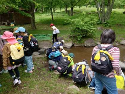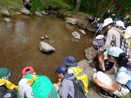 1日に5便のバスがくるバス停の近くに小川があります。水を触って見たら、冷たいと声が上がりました。夏でも冷たいですそうですか。何回も触って感じていました。