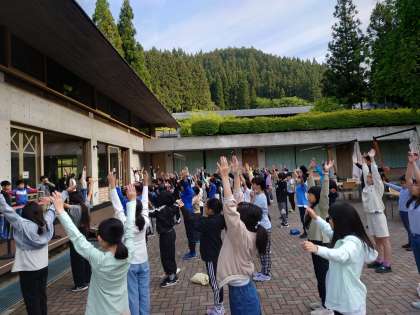 朝会ではラジオ体操をして、体に新鮮な空気を取り込みました。