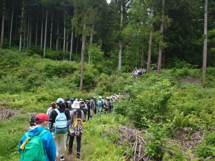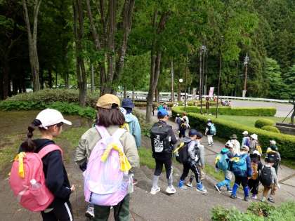 いよいよ登山。ハイキングと行っていますが、アップダウンが結構あります。午前中に教えてもらった野生動物のことや植物のことを歩く途中で感じられるといいですね。