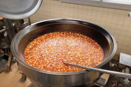今日の主菜は、西湖豆腐です。中国にある西湖周辺で食べられている郷土料理です。マーボー豆腐に似ていますが、辛味はなく、トマトとしょうゆで味付けしているのでさっぱりしています。