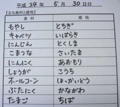 5月30日給食食材産地