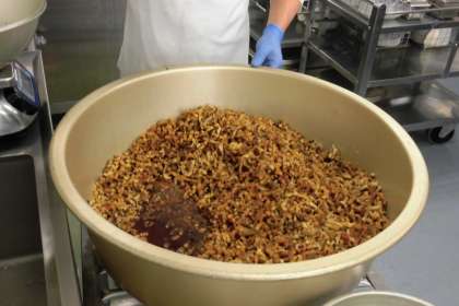 今日の給食は、7月7日の七夕にちなんだ献立です。ちらしずしには、あなごを入れました。写真は、調味料で煮た後のあなごです。七夕汁には、天の川に見立てたそうめん、星形のお麩、短冊のにんじんが入っています。