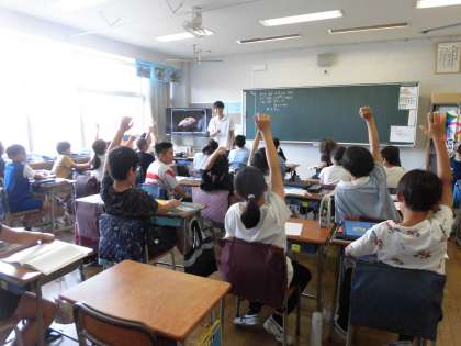 今日も暑い一日となりました。2年生と5年生の教室におじゃましました。低学年と高学年ですが、共通しているのはよく手を挙げて発表するというところと、自分の考えを友達と交流したり、説明しあったりする活動に意欲的に取り組むというところです。関わりのなかで学んでいるのがよくわかりました。みんなよく頑張っています。1学期まとめの時期の光景です。