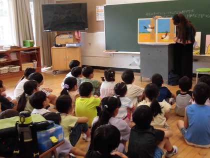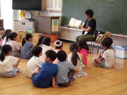 朝の活動の時間、2年生の教室では「モーニングスープ」の方による読み聞かせが行われました。机を寄せて、床に座り、本を読んでくださる方との距離を縮めてお話を聞き、子どもたちが物語の世界に引き込まれています。あるクラスでは先生から、「子どもたちもこれから読み聞かせをするので、どんな気持ちで行ったらいいかアドバイスなどお聞かせください」というと、「モーニングスープ」の方からは、「自分が大好きな本を読んでいます。お気に入りの本を読む、楽しい気持ち、『この本がすきだなあ』という気持ちで読むといいと思います」とお話がありました。