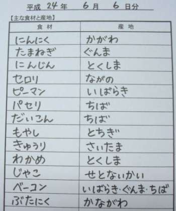 6月6日給食食材産地